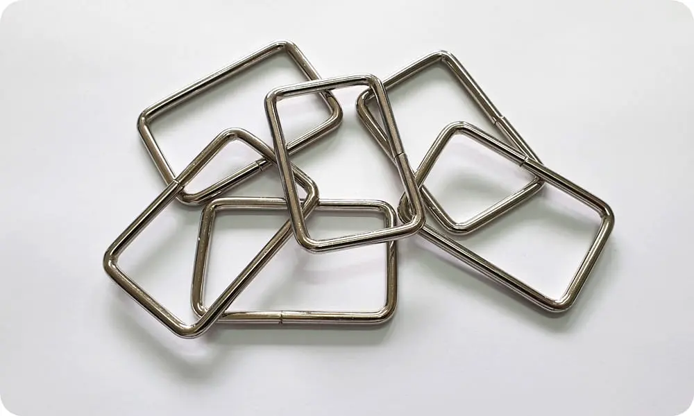 Metalowe ramki. Stosowane są zarówno w przemyśle odzieżowym, jak i kaletnictwie. Używane są do pasków, plecaków, smyczy dla psów, breloczków, karniszy i wielu innych.