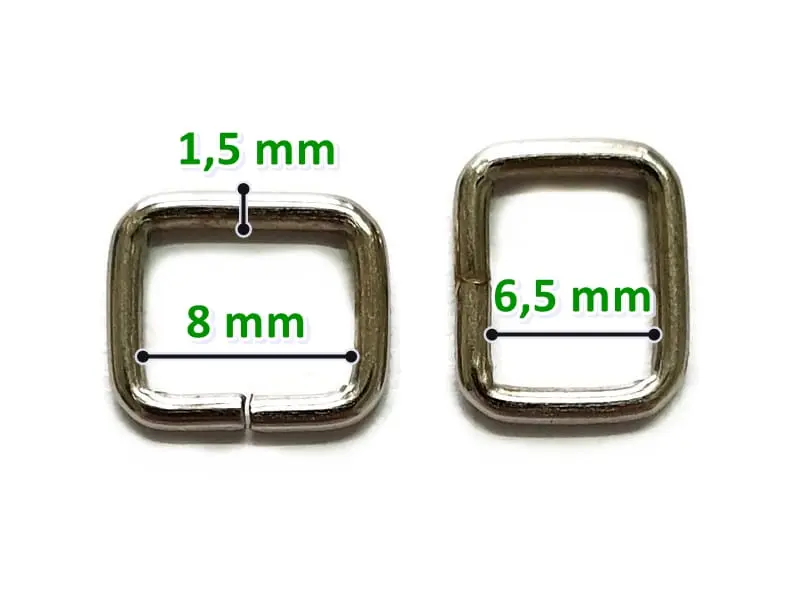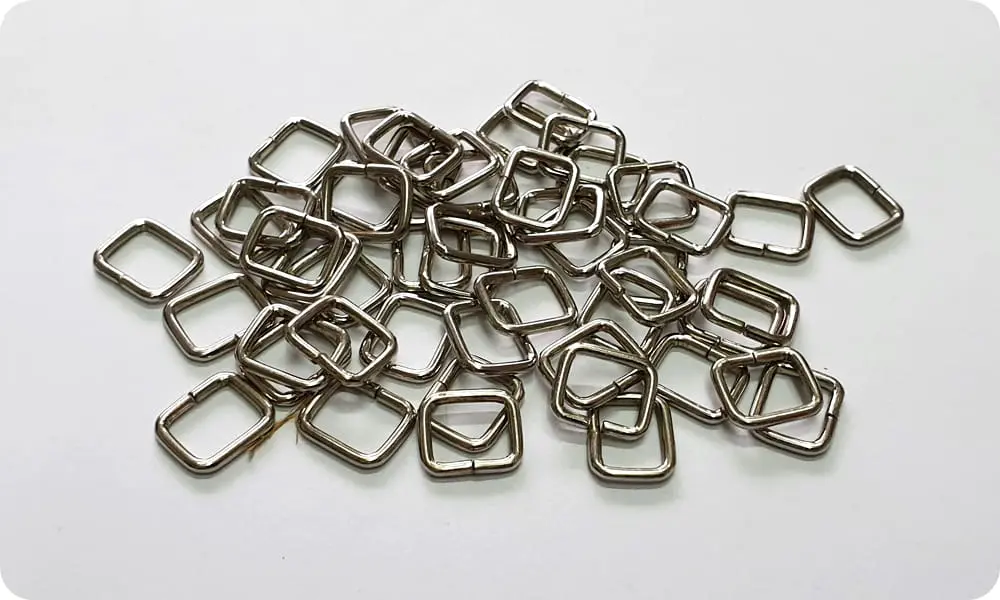 Metalowe ramki. Stosowane są zarówno w przemyśle odzieżowym, jak i kaletnictwie. Używane są do pasków, plecaków, smyczy dla psów, breloczków, karniszy i wielu innych.