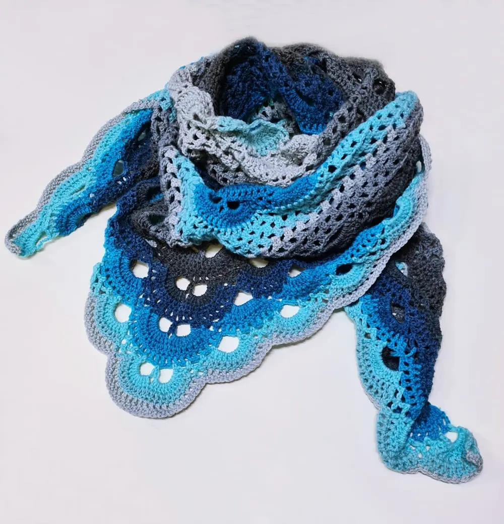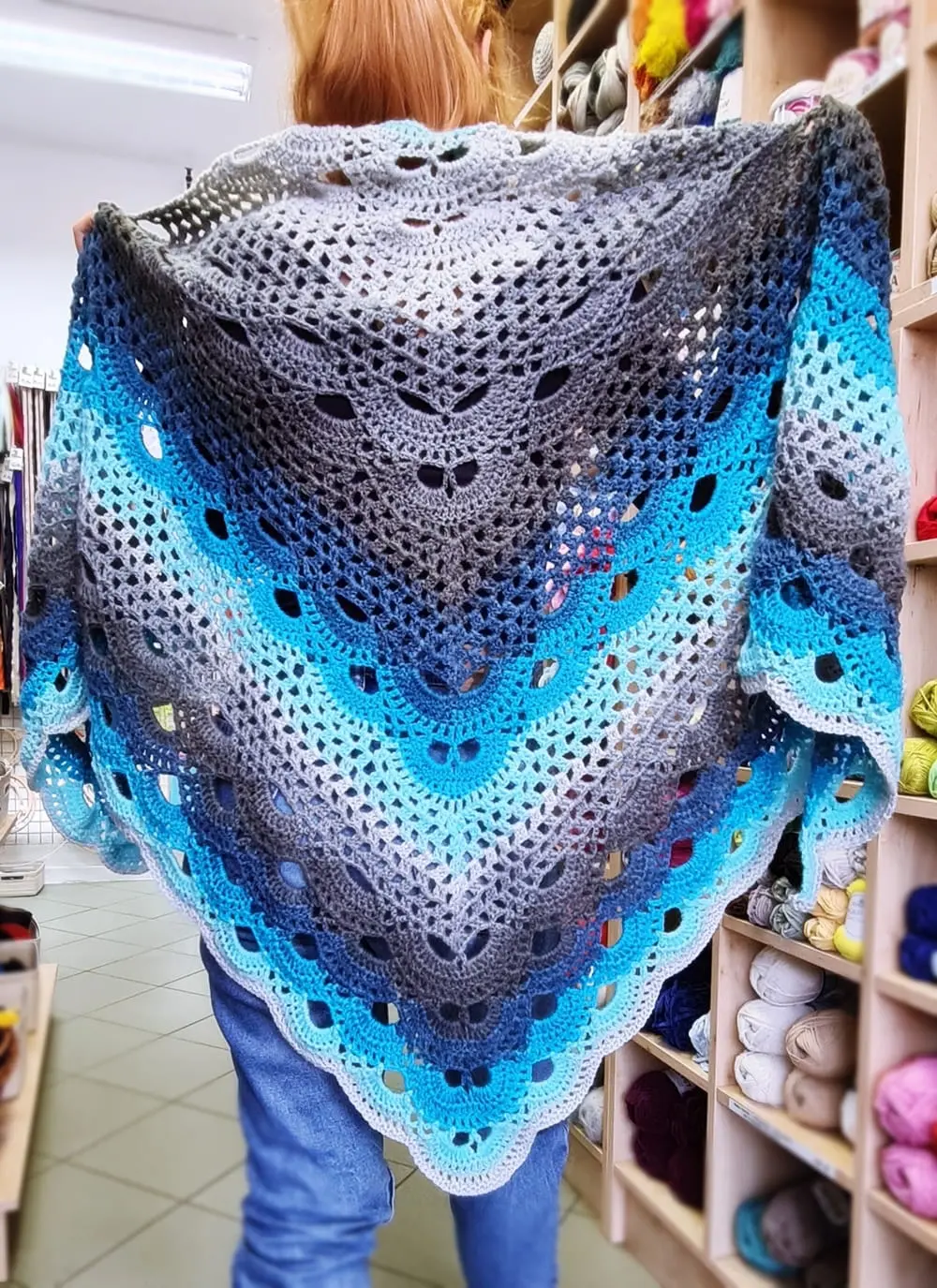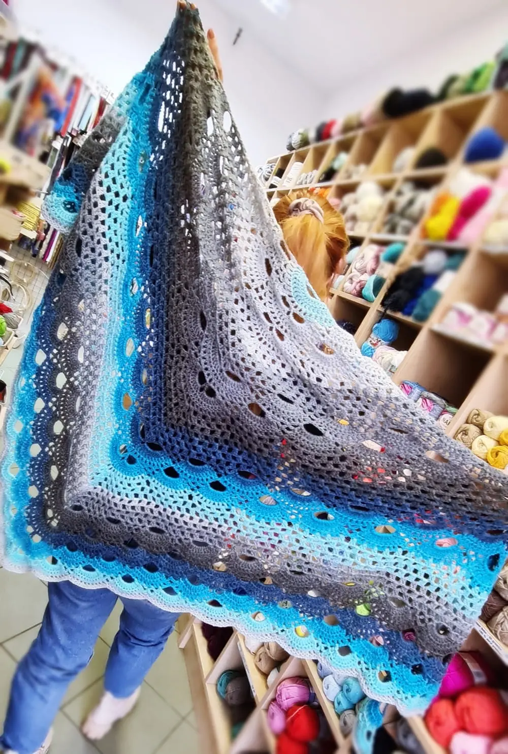 Ręcznie Robiona Niebiesko-Szara CHUSTA XXL