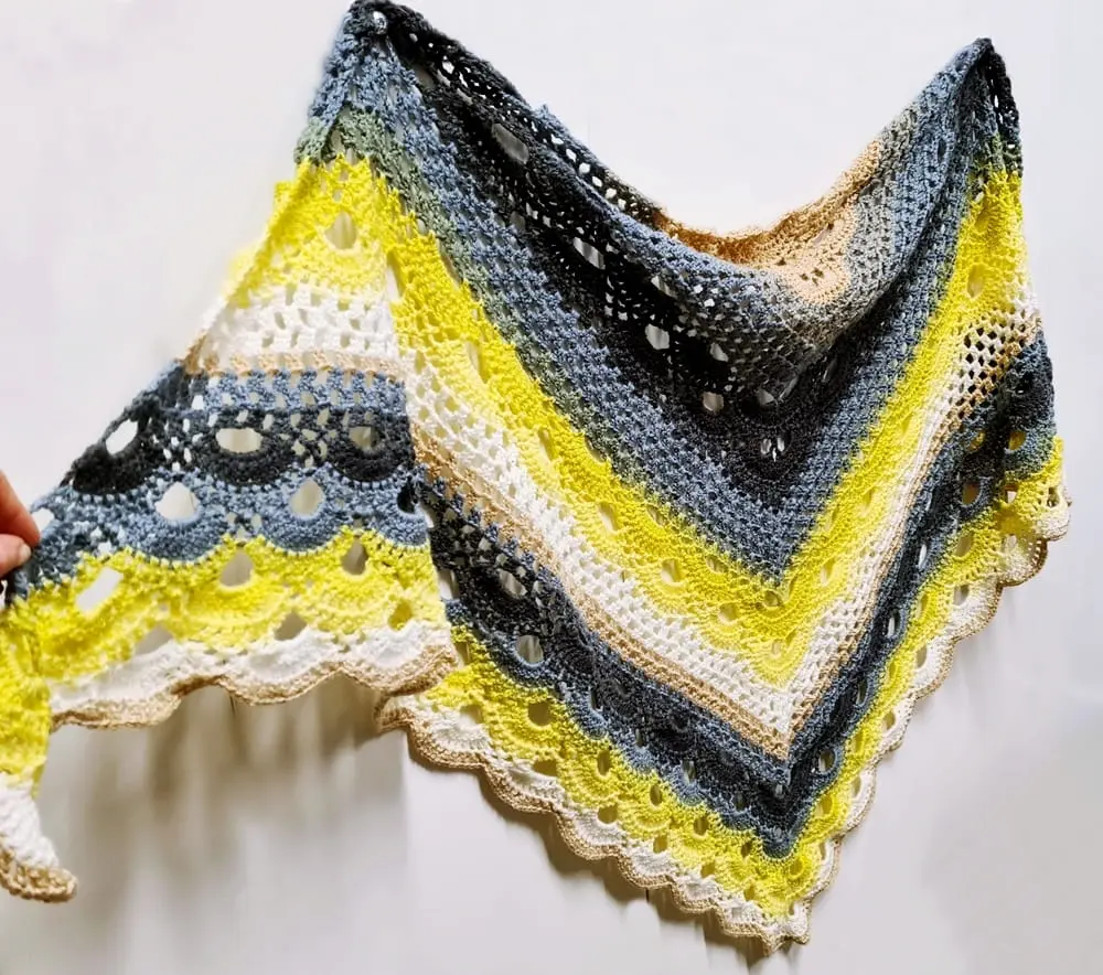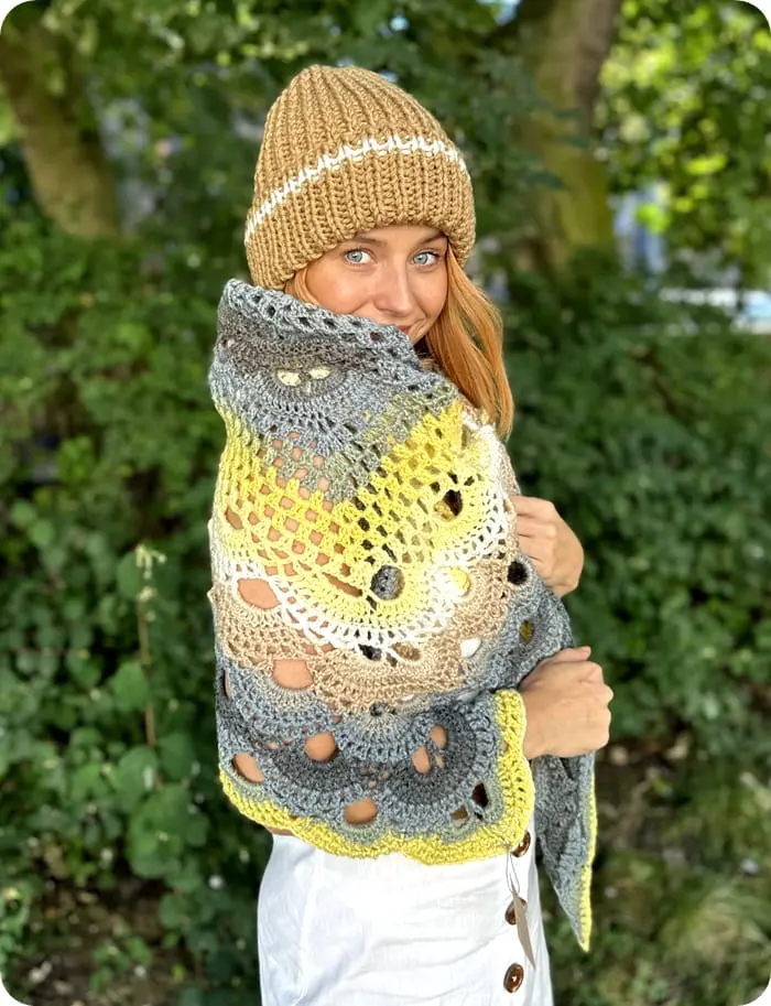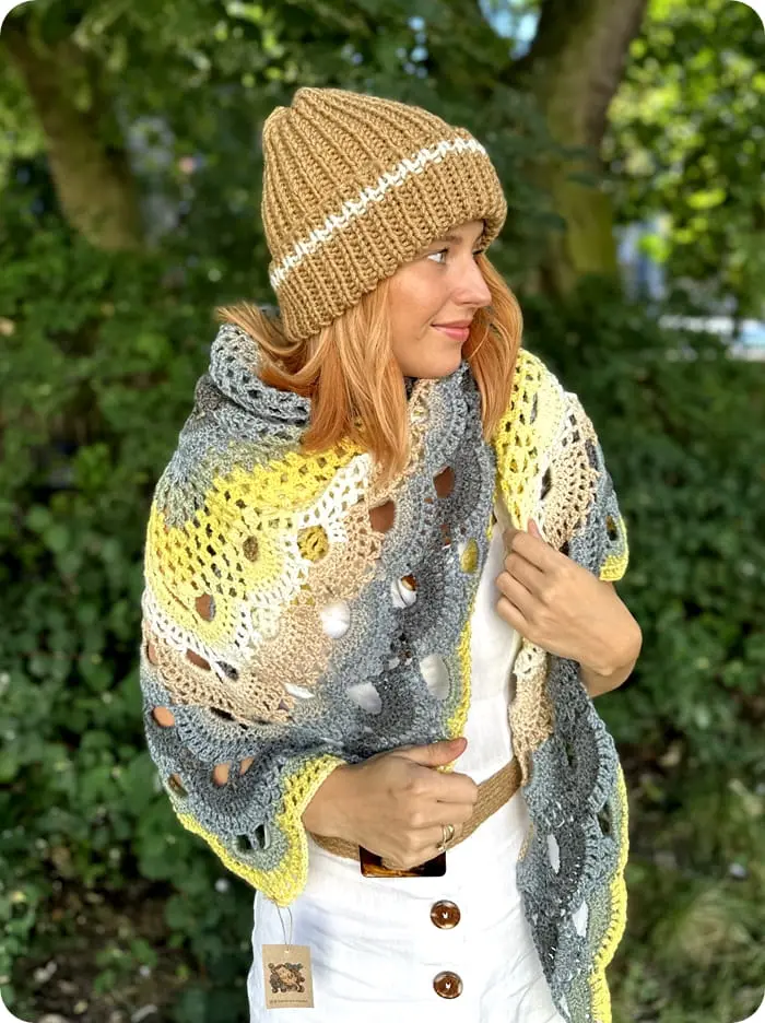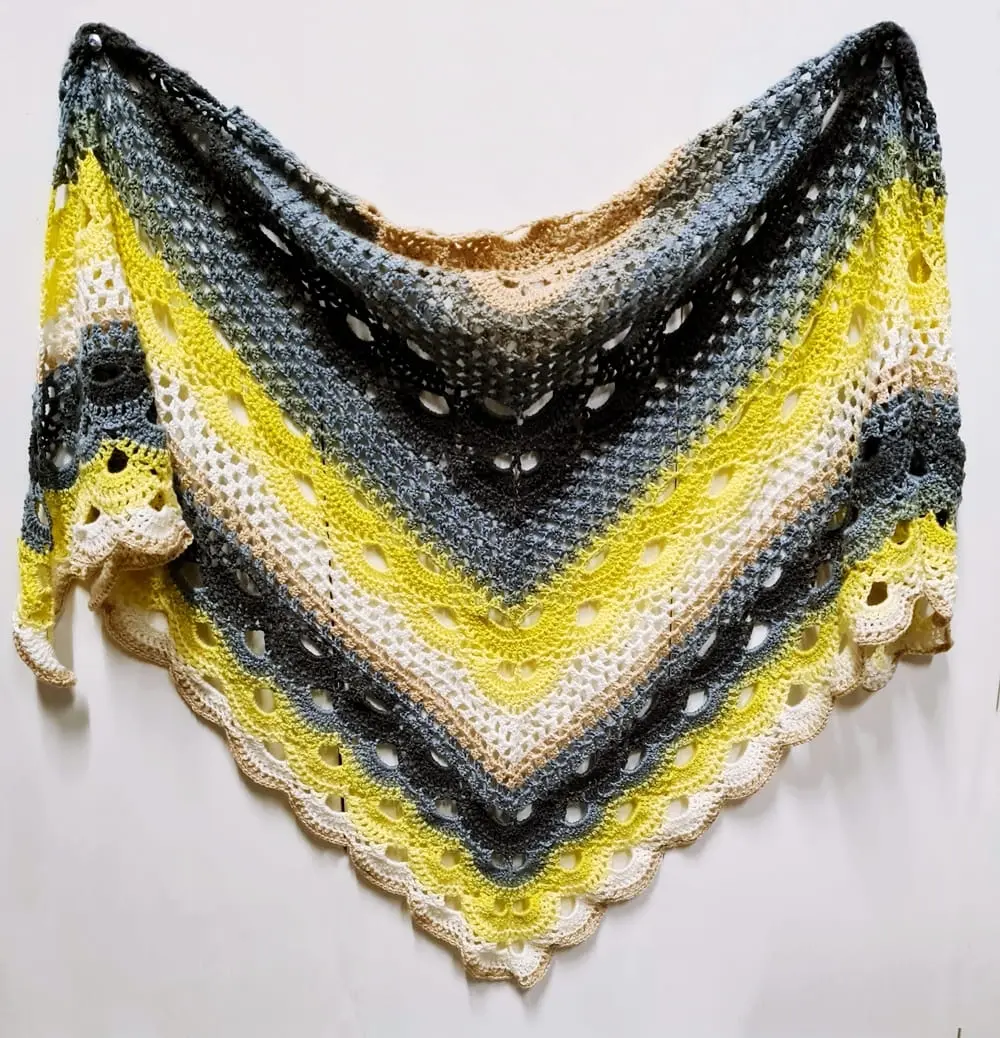 Ręcznie Robiona Żółto-Szara CHUSTA XXL