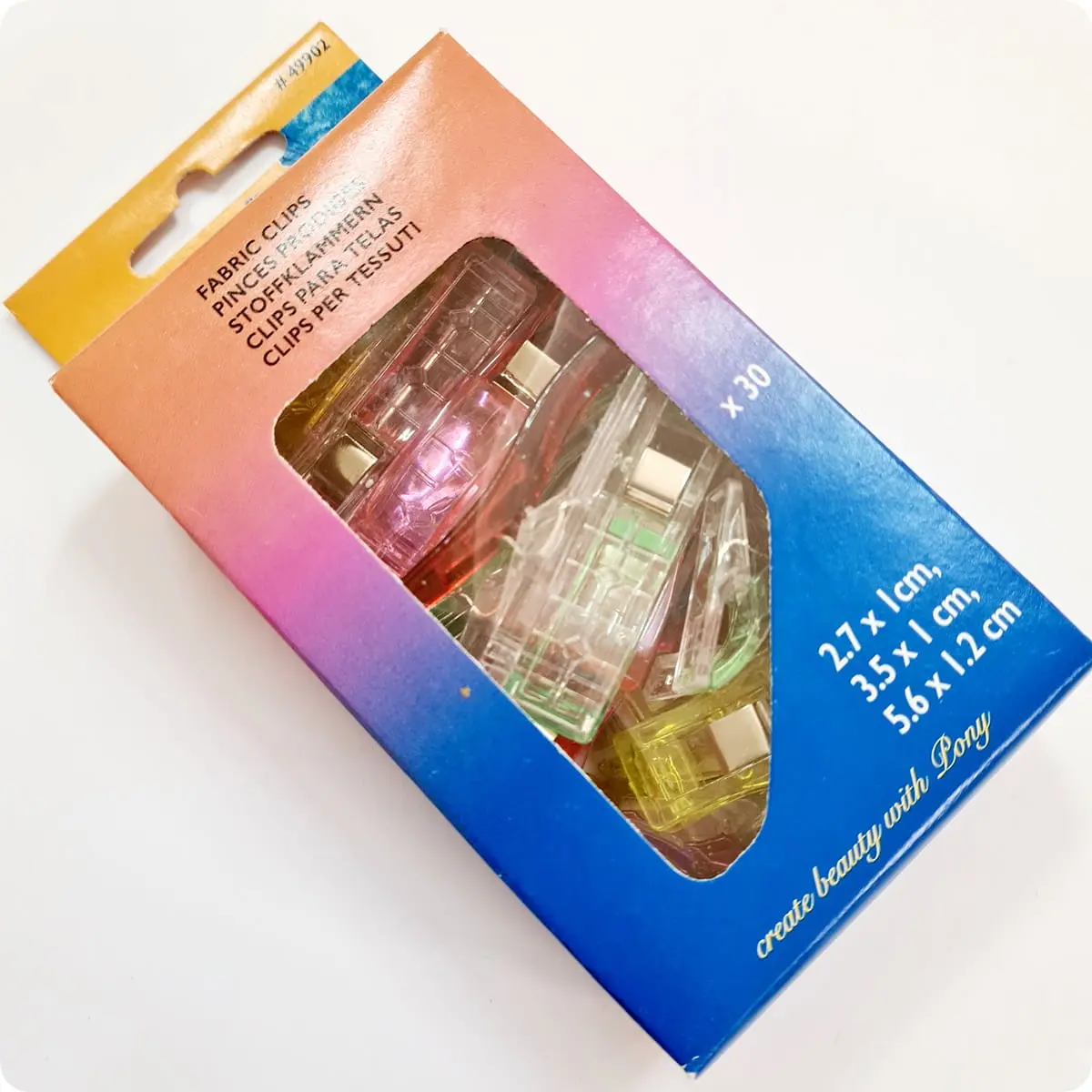 Spinacze / klipsy do tkanin mix PONY to nowoczesne narzędzie, które z pewnością ułatwi Twoją pracę i pozwoli osiągnąć precyzyjne rezultaty. Klipsy do tkanin to idealny wybór zarówno dla amatorów, jak i profesjonalistów, którzy cenią sobie komfort i funkcjonalność podczas szycia. Dzięki nim unikniesz problemów związanych z wyginaniem się szpilek czy trudnościami w stabilnym utrzymaniu materiału.