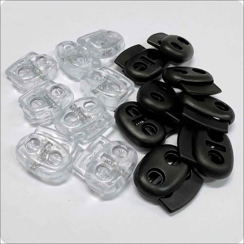 Strona główna » Pasmanteria on-line » GALANTERIA PLASTIKOWA » Stopery plastikowe i końcówki do sznurków » Stopery PODWÓJNE nylonowe do sznurka (207)