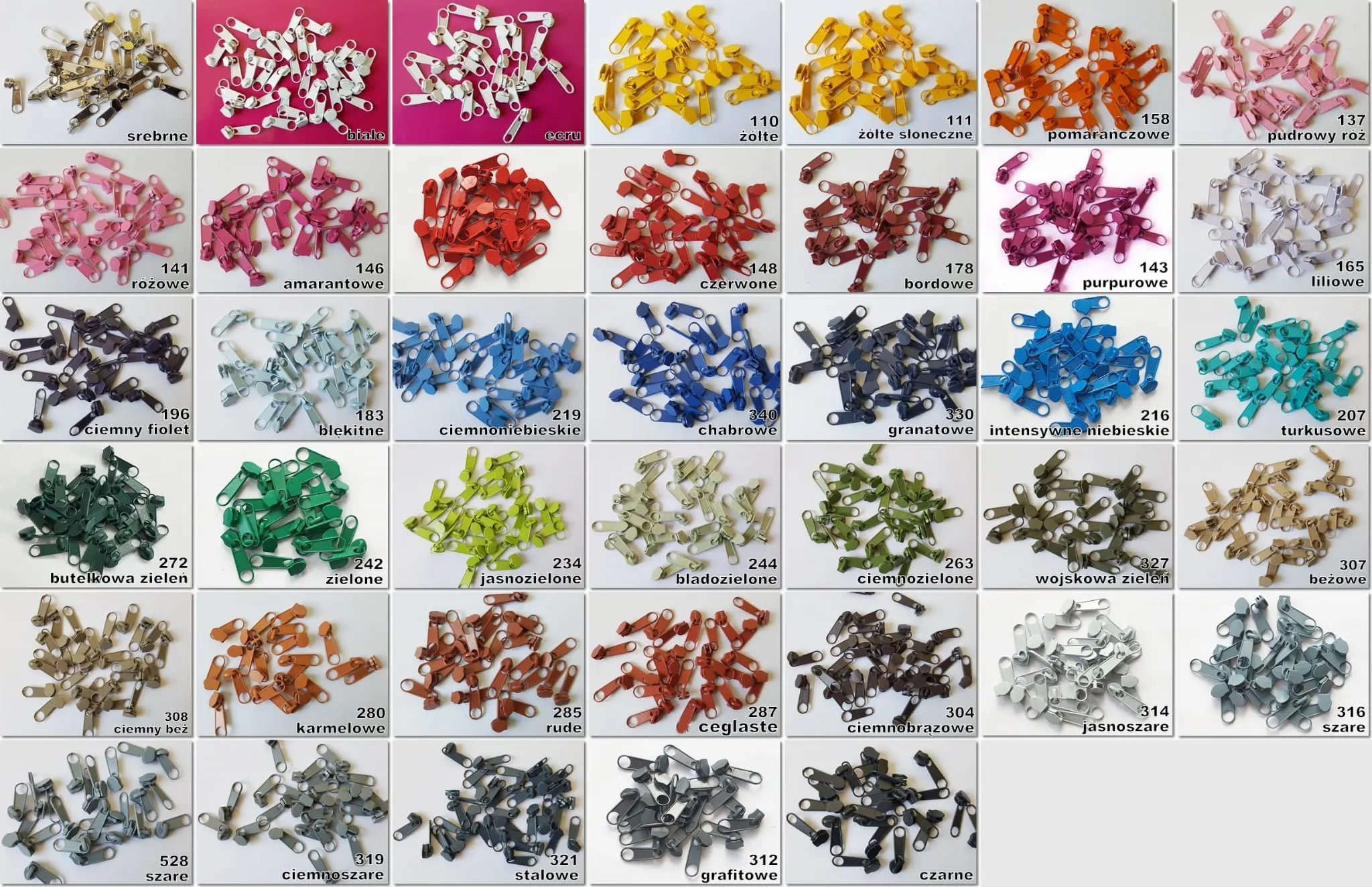 biały ,ecru ,110 żółty ,111 żółty słoneczny ,137 pudrowy róż ,141 różowy ,143 purpurowy ,146 amarantowy ,148 czerwony ,158 pomarańczowy ,162 jasnoczerwony ,165 liliowy ,178 bordowy ,183 błękitny ,196 ciemny fiolet ,207 turkusowy ,216 intensywny niebieski ,219 ciemnoniebieski ,234 jasnozielony ,242 zielony ,244 bladozielony ,263 ciemnozielony ,272 butelkowa zieleń ,280 karmelowy ,285 rudy ,287 ceglasty ,304 ciemnobrązowy ,307 beżowy ,308 ciemny beż ,312 grafitowy ,314 jasnoszary ,316 szary ,319 ciemnoszary ,321 stalowy ,327 wojskowa zieleń ,330 granatowy ,340 chabrowy ,528 szary ,czarny ,srebrny ,329 szary gołębi |