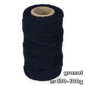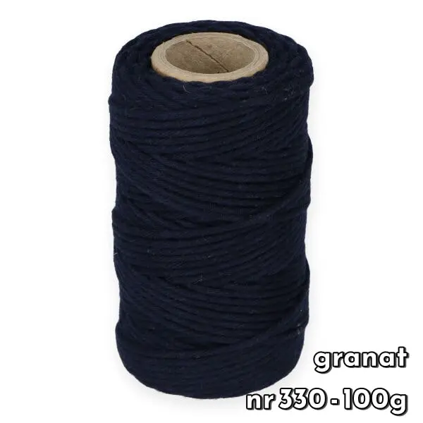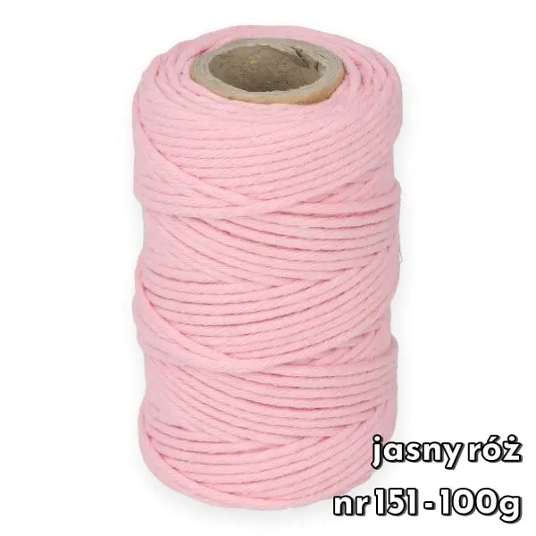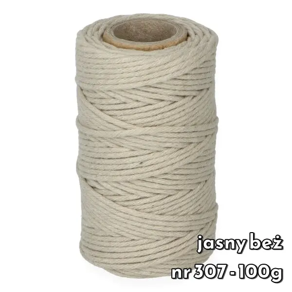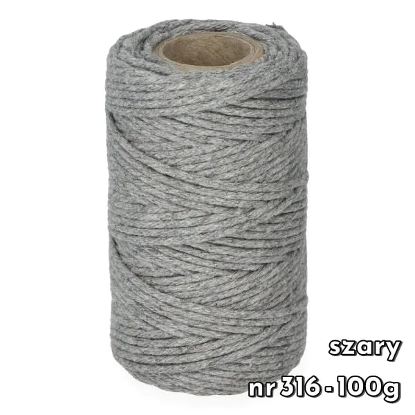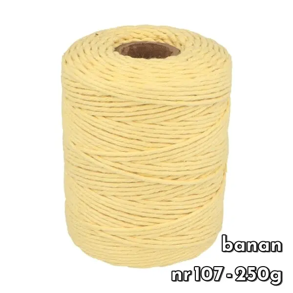 Sznurek bawełniany skręcany 2 mm to jeden z najbardziej popularnych grubości sznurków. Wykonany jest ze 100% bawełny. Jest gładki, łatwy podczas pracy i nie rozciąga się. Sznurek ten jest dobrym rozwiązaniem również dla początkujących, łatwo go rozplątać i jest zdecydowanie tańszy od modelu plecionego.