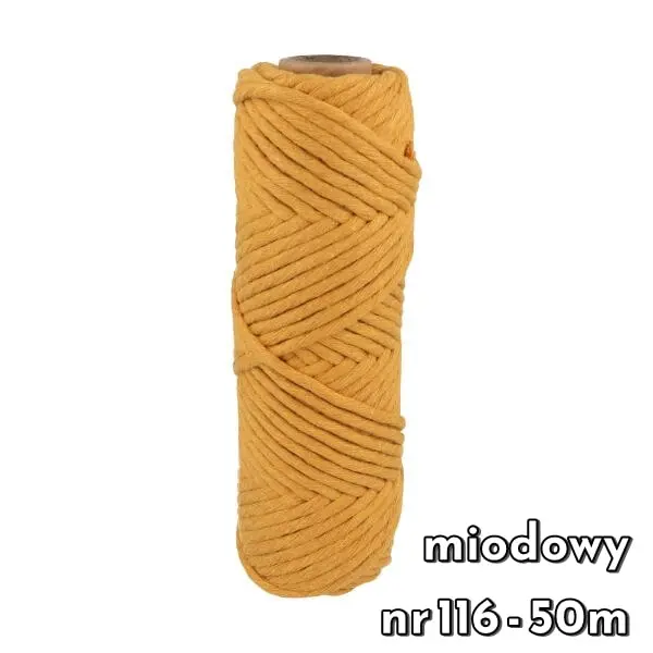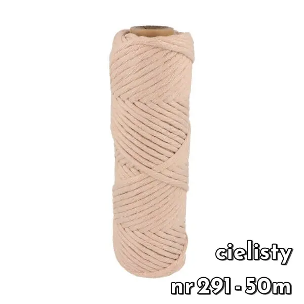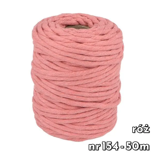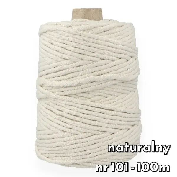 Sznurek bawełniany skręcany 5 mm to najgrubszy oferowany produkt tego typu. Polecany jest szczególnie na makramy. Można z niego stworzyć dekoracje o naprawdę dużych rozmiarach. Dzięki swojej grubości praca idzie dużo łatwiej i szybciej.