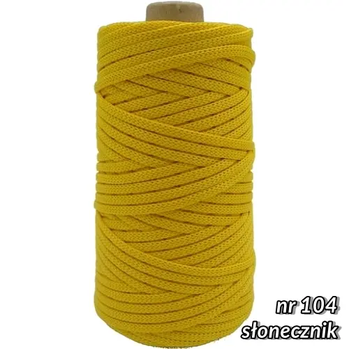 Sznurek poliestrowy płaski to wytrzymały i praktyczny produkt. Wykonany z wysokiej jakości poliestru, zapewnia trwałość i odporność na działanie warunków atmosferycznych i rozciąganie. Sznurek ten doskonale nadaje się do tworzenia toreb, plecaków, torb podróżnych, zapewniając stabilną i wygodną konstrukcję. Sznurek poliestrowy idealnie nadaje się też do wykonywania makram, puf, dywanów, koszyczków, osłonek na doniczki i wielu innych akcesoriów domowych. Ten rodzaj sznurka jest łatwy w manipulacji i nadaję się do różnych technik wiązania, plecenia czy też do szydełkowania.