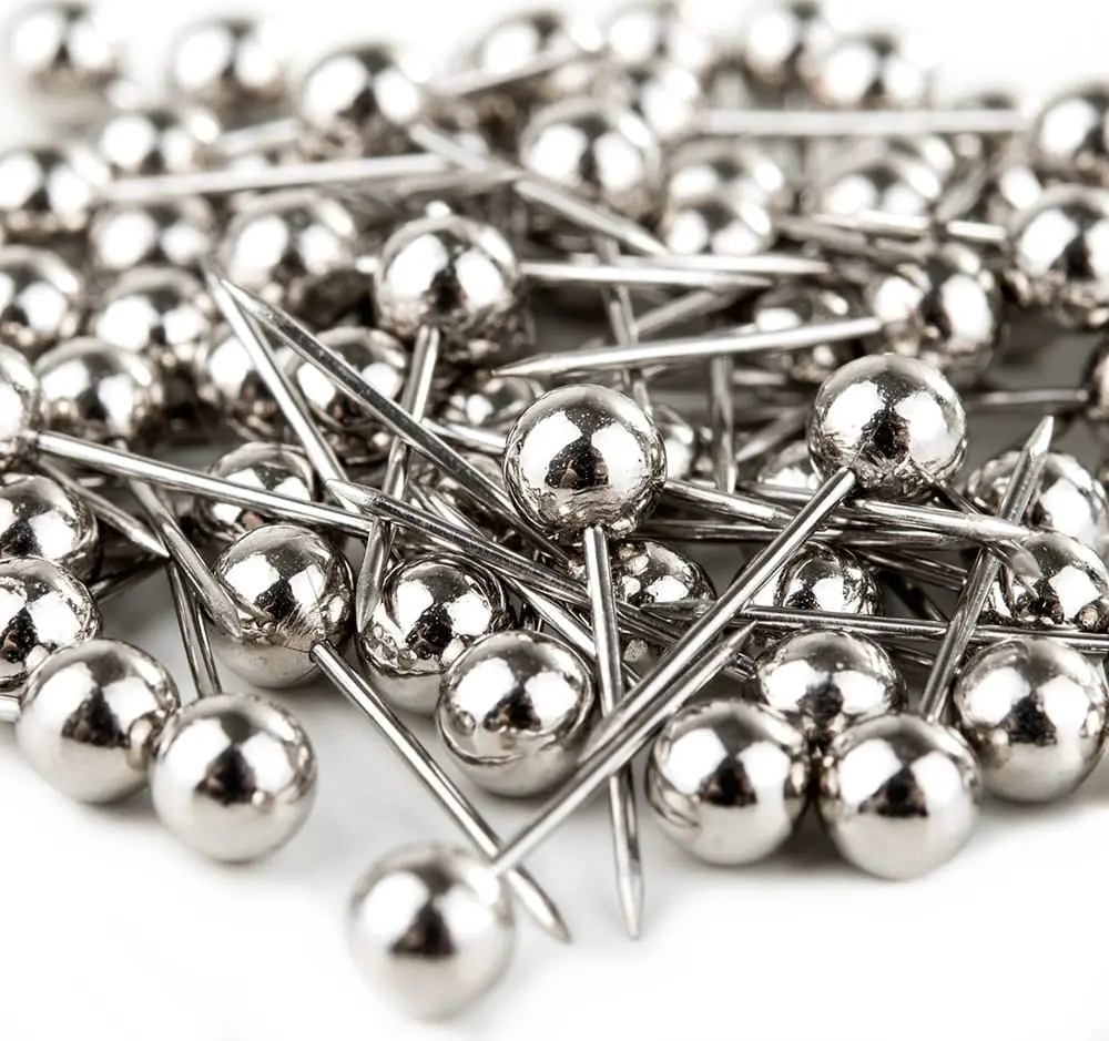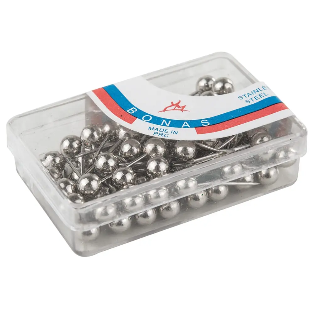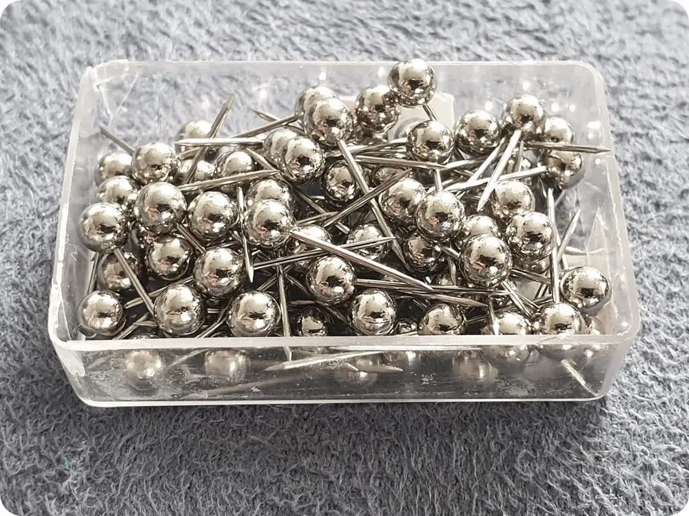 Eleganckie szpilki zakończone kuleczką. Końcówki szpileczek są ostre, dzięki czemu z łatwością wbijają się w styropian.