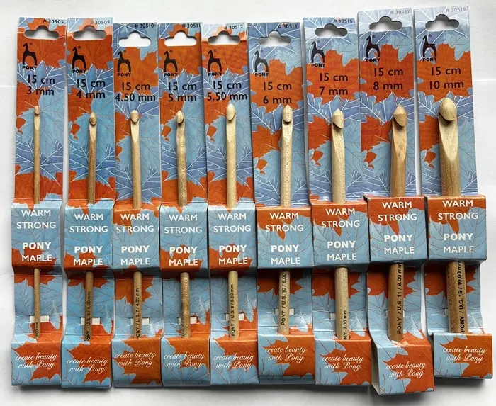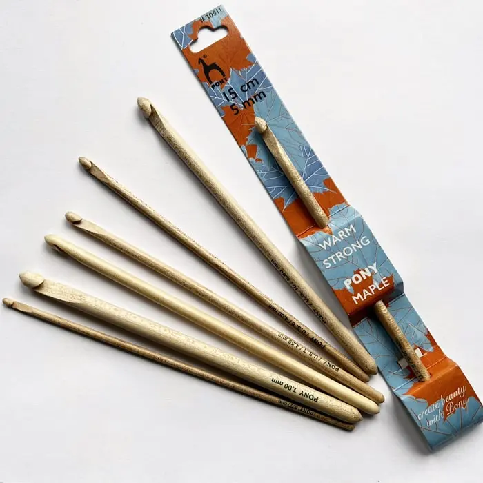 Szydełko PONY Maple są wykonane z trwałych, cennych gatunków twardego drewna z drzew liściastych. Są one wysoce polerowane bez dodawania chemikaliów, aby sprostać wymaganiom dotyczącym biodegradacji.