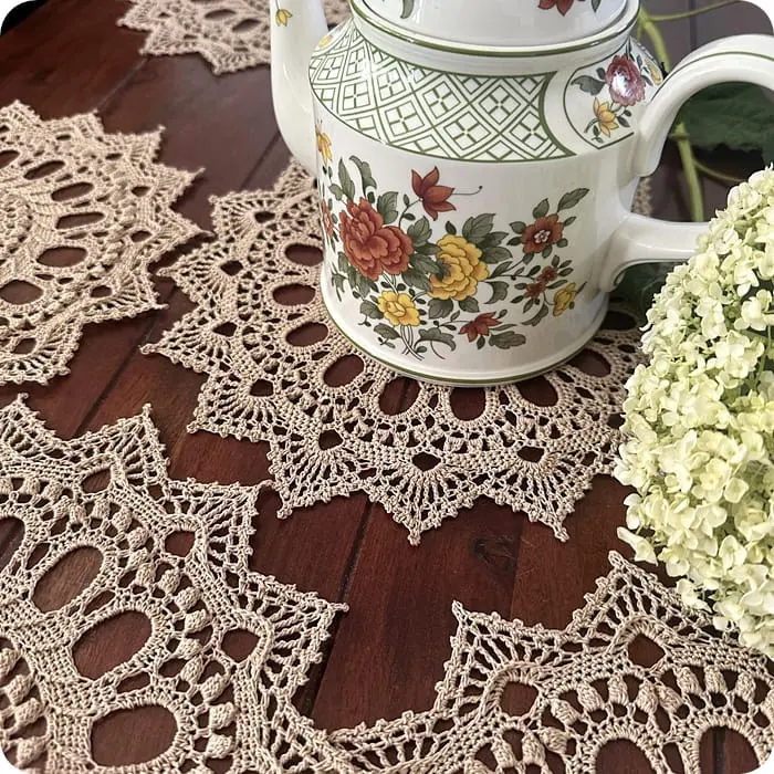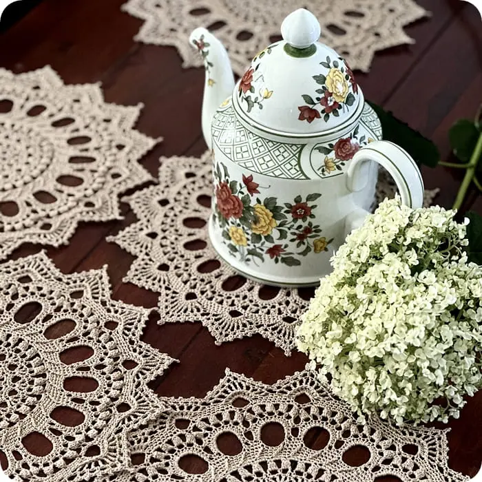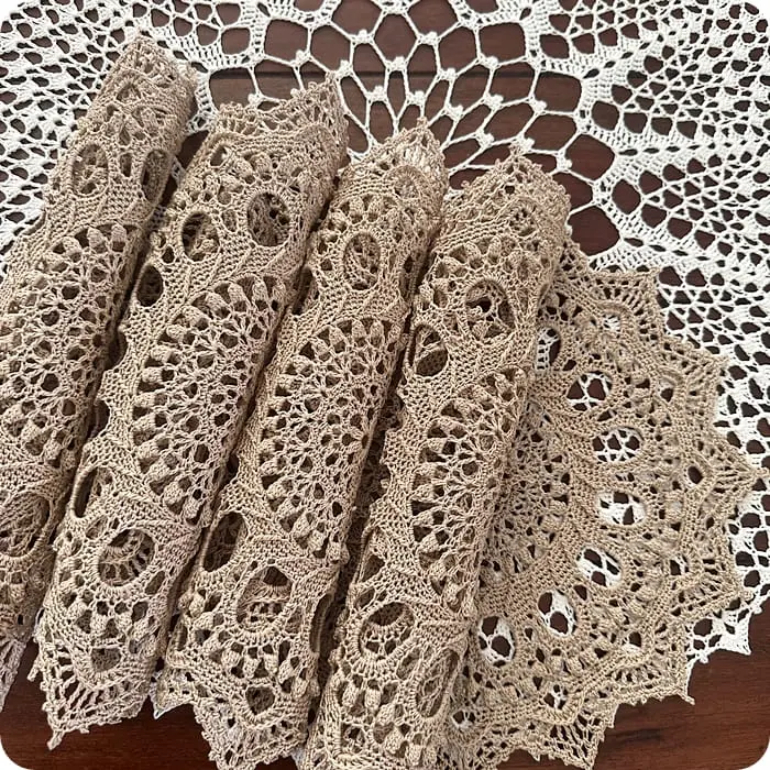 Pięknie wkomponuje się w aranżacje w starym stylu, serwetka doskonale wygląda na antycznych meblach.