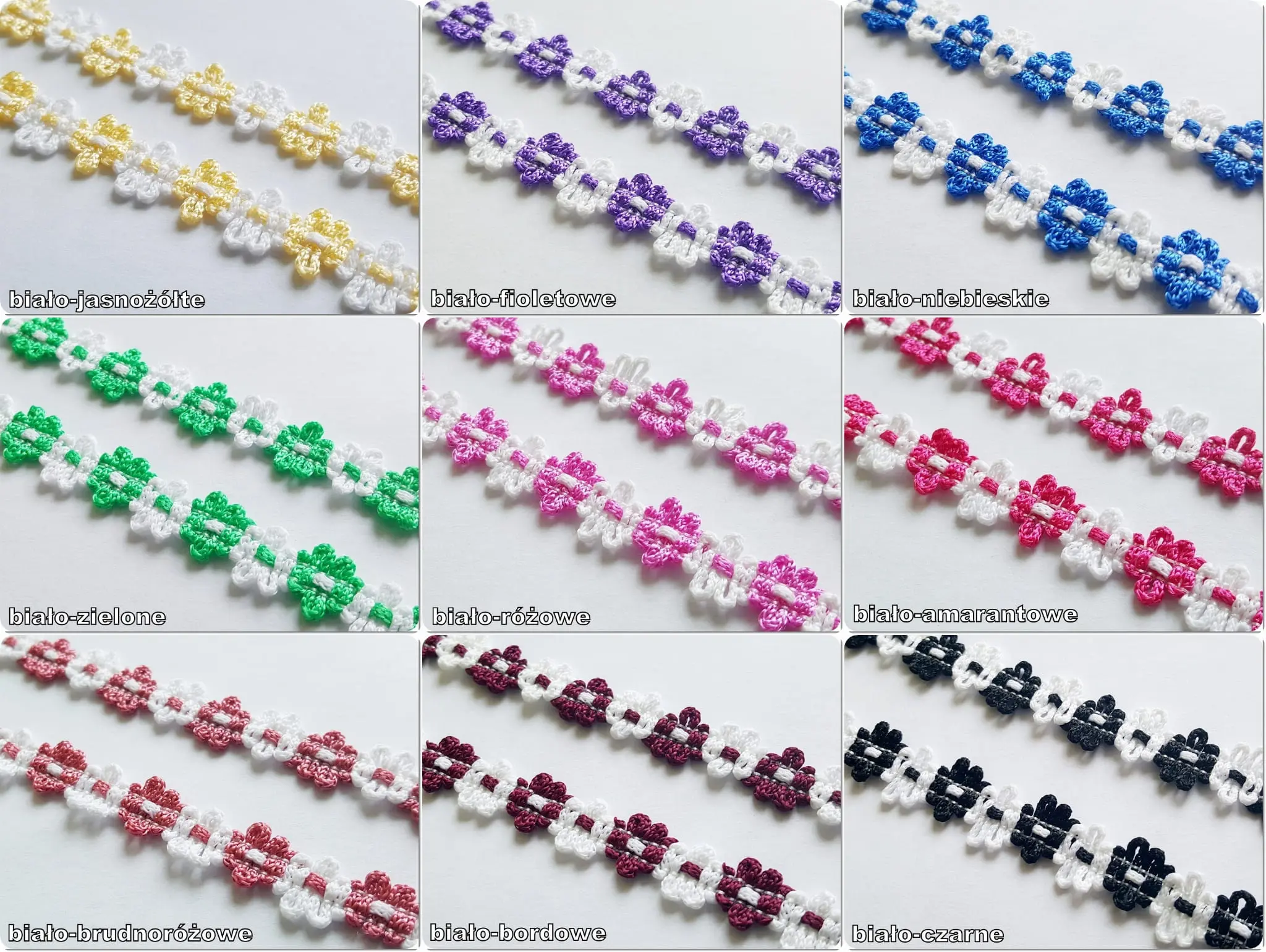 TAŚMA OZDOBNA KWIATKI Z DZIANINY 11 mm RÓŻNE KOLORY