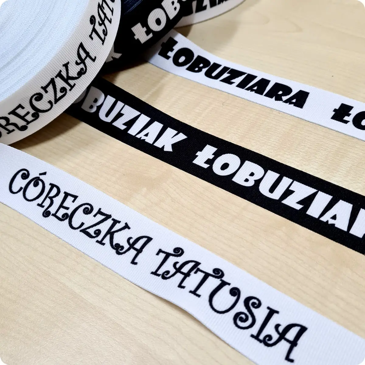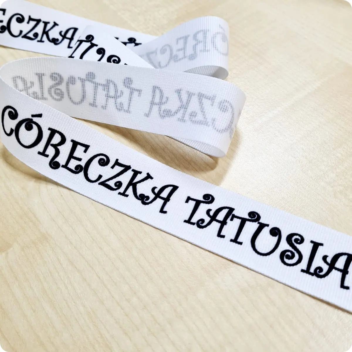 Taśma rypsowa z napisem CÓRECZKA TATUSIA.
