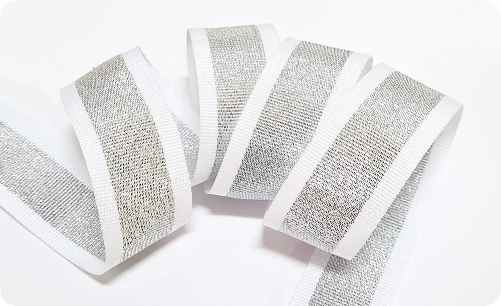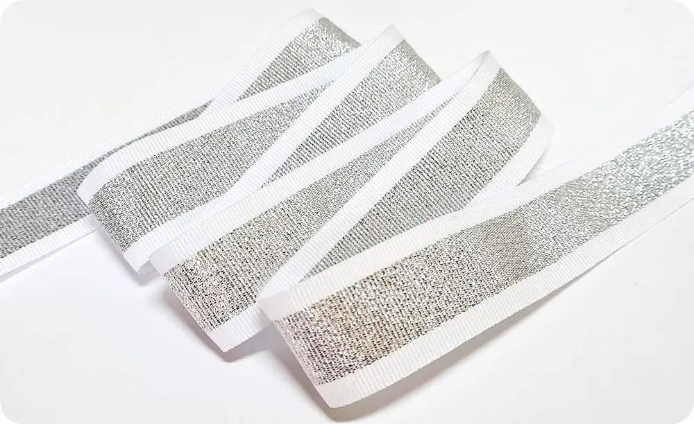 TAŚMA RYPSOWA LAMPASOWA 30 mm – BIAŁO-SREBRNA