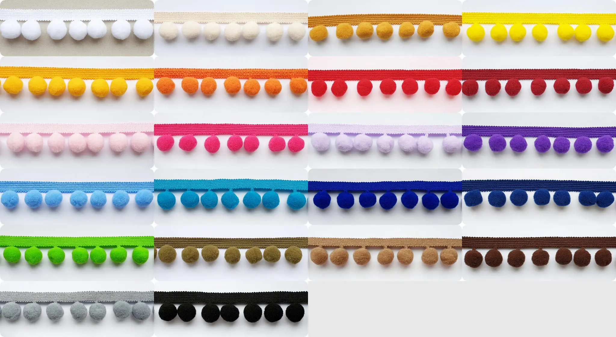 Strona główna » Pasmanteria on-line » TAŚMY » Taśmy ozdobne » TAŚMA z POMPONAMI 4cm – opakowanie 10 metrów