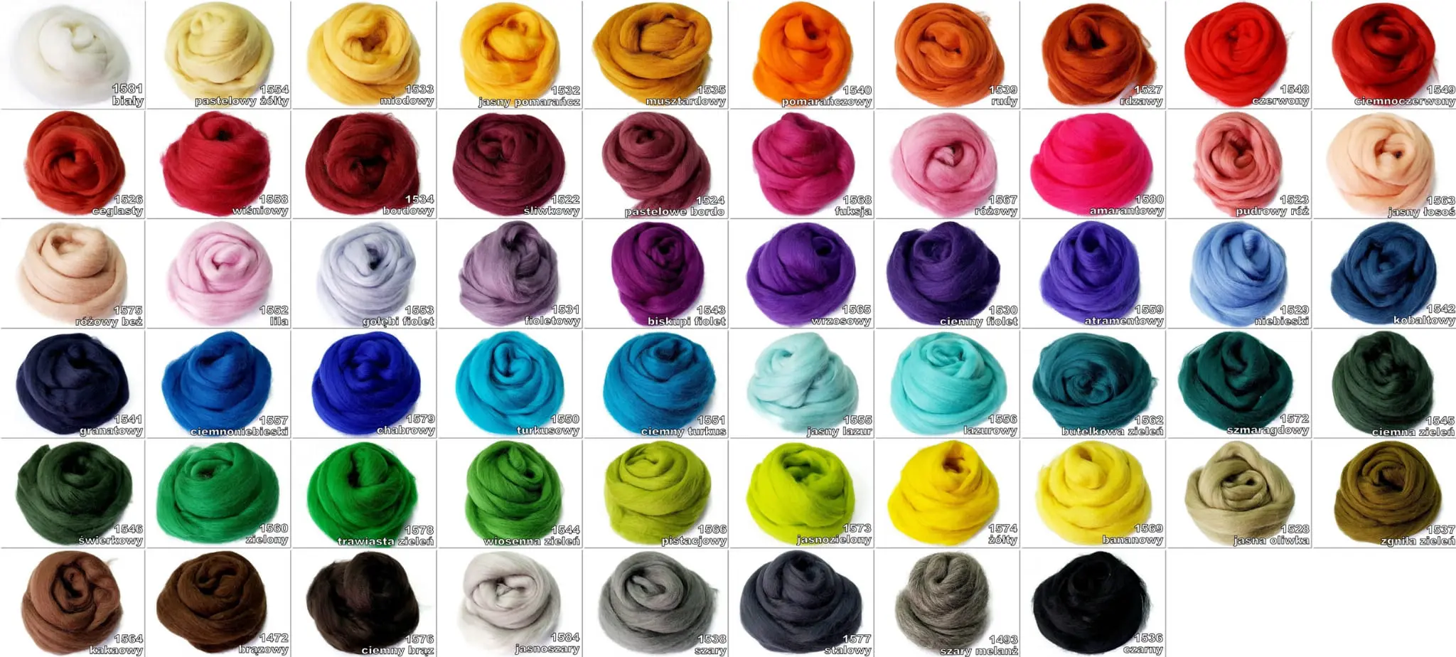 1522 śliwkowy ,1523 pudrowy róż ,1524 pastelowe bordo ,1526 ceglasty ,1527 rdzawy ,1528 jasna oliwka ,1529 niebieski ,1530 ciemny fiolet ,1531 fioletowy ,1532 jasny pomarańcz ,1533 miodowy ,1534 bordowy ,1535 musztardowy ,1536 czarny ,1537 zgniła zieleń ,1538 szary ,1539 rudy ,1540 pomarańczowy ,1541 granatowy ,1542 kobaltowy ,1543 biskupi fiolet ,1544 wiosenna zieleń ,1545 ciemna zieleń ,1546 świerkowy ,1548 czerwony ,1549 ciemnoczerwony ,1550 turkusowy ,1551 ciemny turkus ,1552 lila ,1553 gołębi fiolet ,1554 pastelowy żółty ,1555 jasny lazur ,1556 lazurowy ,1557 ciemnoniebieski ,1558 wiśniowy ,1559 atramentowy ,1560 zielony ,1562 ,1563 jasny łosoś ,1564 kakaowy ,1472 brązowy ,1493 szary melanż ,1565 wrzosowy ,1566 pistacjowy ,1567 różowy ,1568 fuksja ,1569 bananowy ,1572 szmaragdowy ,1573 jasnozielony ,1574 żółty ,1575 różowy beż ,1576 ciemny brąz ,1577 stalowy ,1578 butelkowa zieleń ,1579 chabrowy ,1580 amarantowy ,1581 biały ,1584 jasnoszary ,1582 ciemny beż ,1583 jasny beż |
