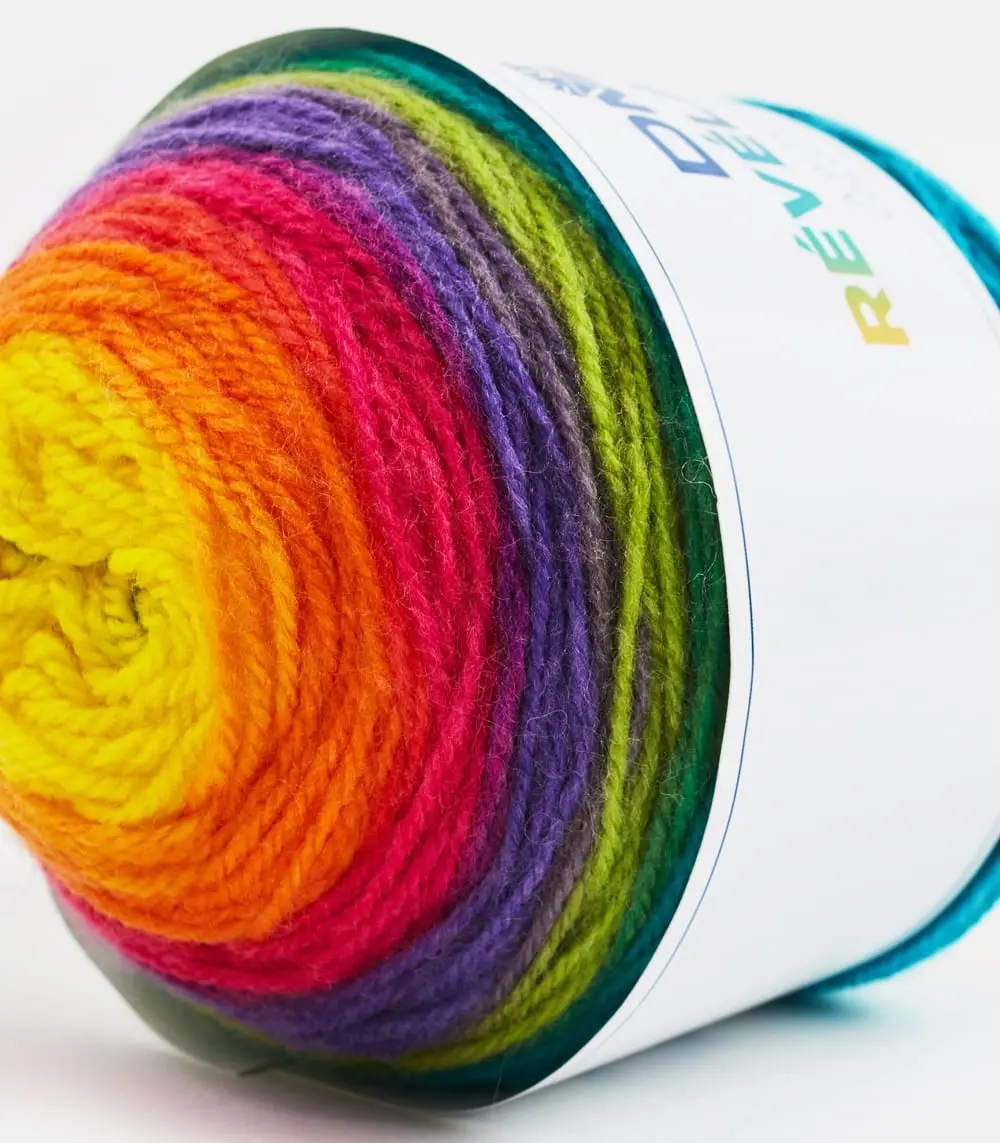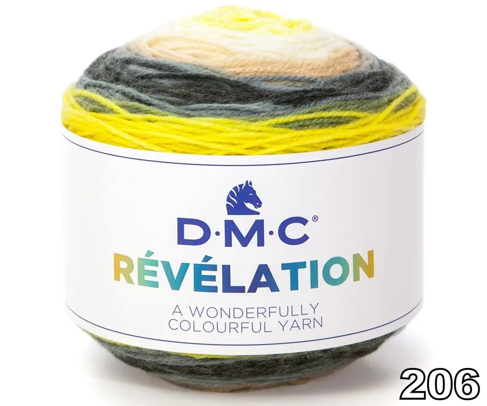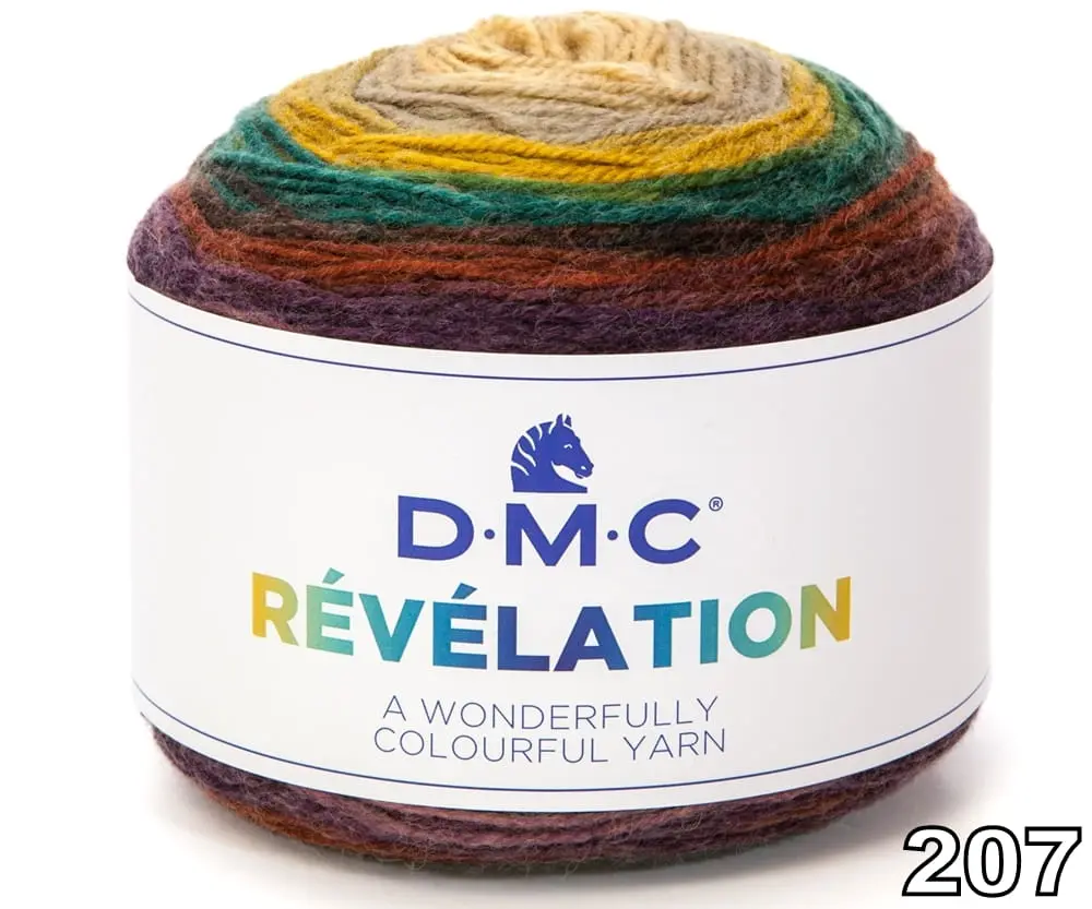 DMC Revelation to lekka, miła w dotyku nitka, o wspaniałych efektownych kolorach. Włóczka jest wielobarwna, składająca się z sekwencji 6 kolorów.