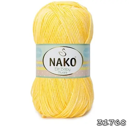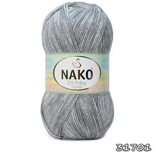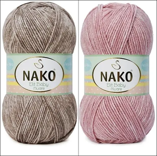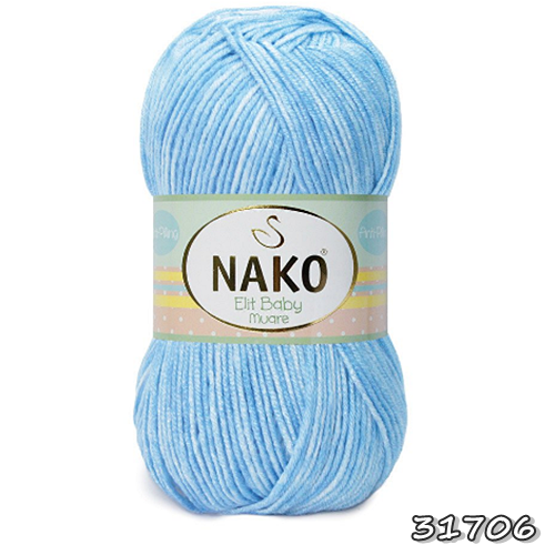 Włóczka Nako Elit Baby Muare to bardzo przyjemna i miękka w dotyku włóczka. Idealna na wyroby dziecięce i nie tylko. Jej skład – akryl premium ANTI PILLING (dralon) sprawia, że włóczka w ogóle się nie mechaci i zachowuje swój pierwotny wygląd przez długie lata.