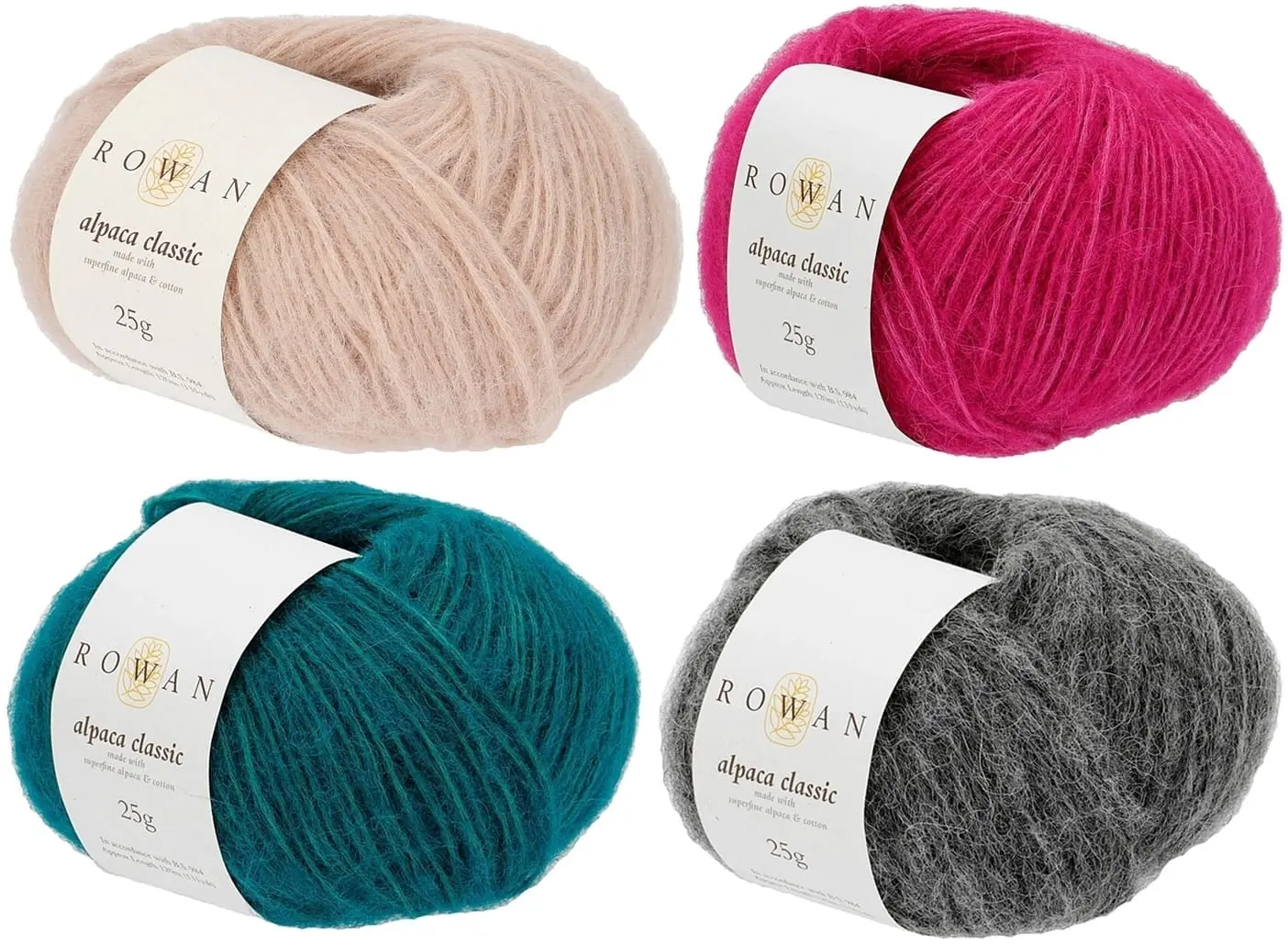 Dzięki drobnej gramaturze i intensywnej palecie kolorów Alpaca Classic idealnie nadaje się do lekkich, ale ciepłych ubrań i akcesoriów. Jej pierzasty charakter i romantyczny wygląd uzyskano poprzez wypełnienie delikatnej bawełnianej siateczki luksusowymi włóknami alpaki, co dało lekką przędzę o niewiarygodnym metrażu i spektakularnej fakturze. Dziany na większych drutach, stanowi ekscytujący wybór również do wzorów koronkowych.