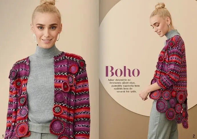 Bogata paleta kolorystyczna Boho Concept zachęca do tworzenia niepowtarzalnych projektów – od klasycznych po bardziej artystyczne i awangardowe. Każdy motek to nowa możliwość do wyrażenia siebie.
