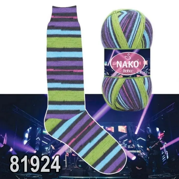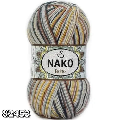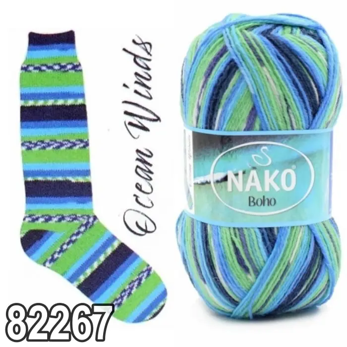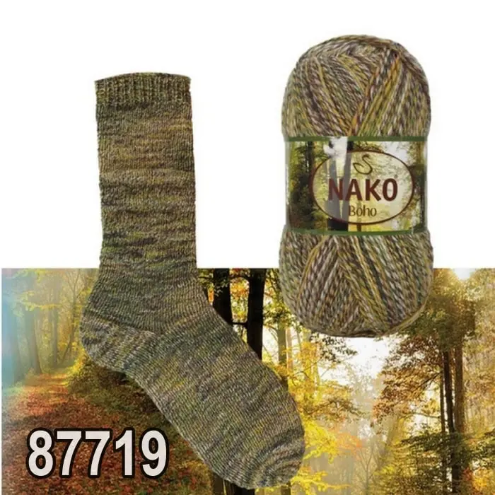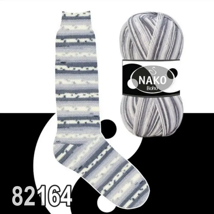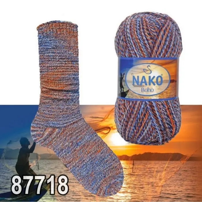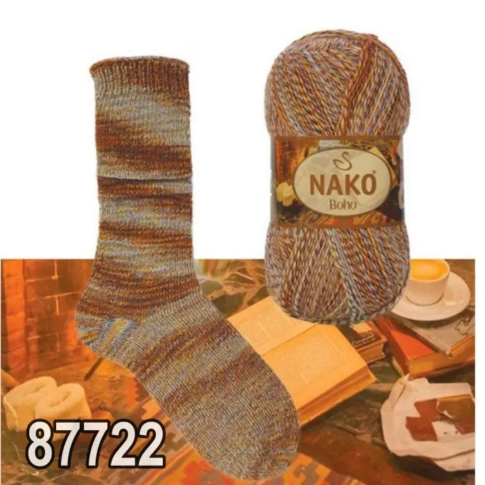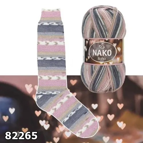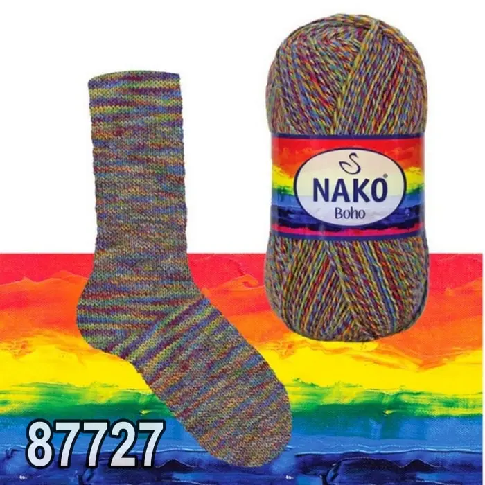 Nako Boho to cienka ciepła włóczka, która można używać cały rok. Połączenie dużej ilości wełny i poliamidu sprawia, że będzie idealną włóczką skarpetkową