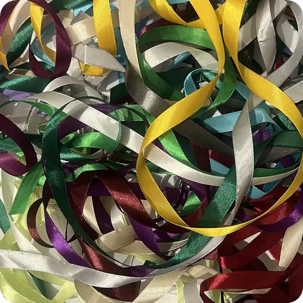 Zestaw zawiera 18 wstążek w różnych kolorach po 1 metrze.