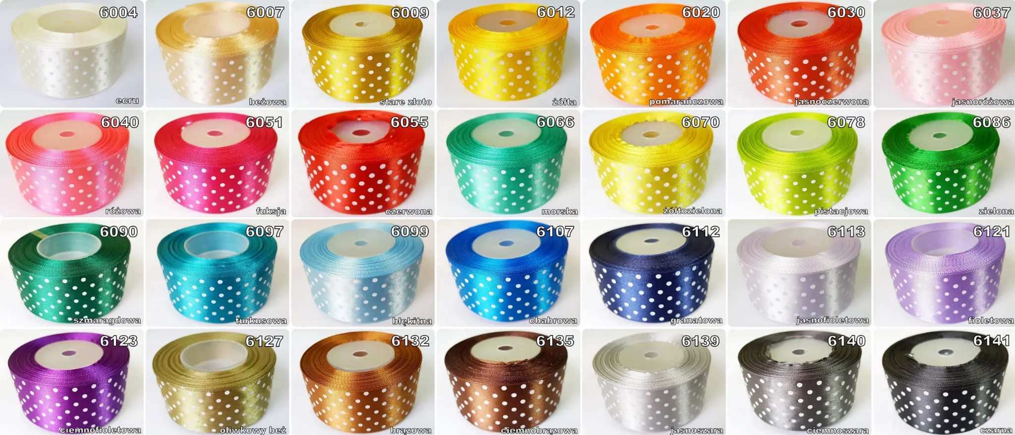 Strona główna » Pasmanteria on-line » WSTĄŻKI » Wstążki satynowe, atłasowe » Wstążka SATYNOWA w KROPKI 25mm KRĄŻEK 22m