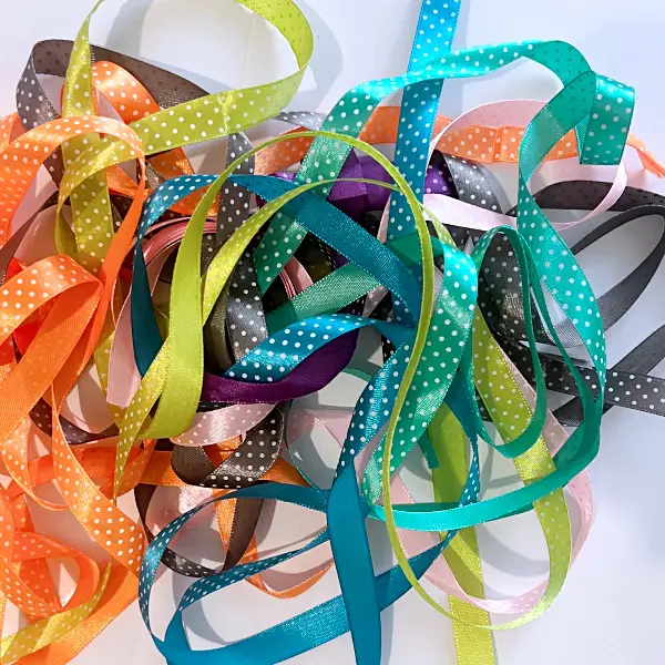 Zestaw zawiera 8 wstążek w różnych kolorach po 1 metrze.