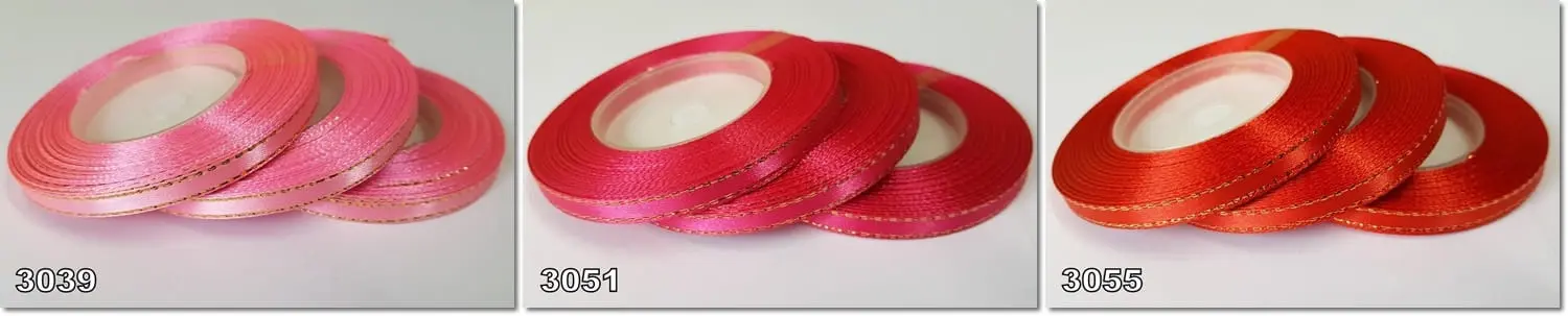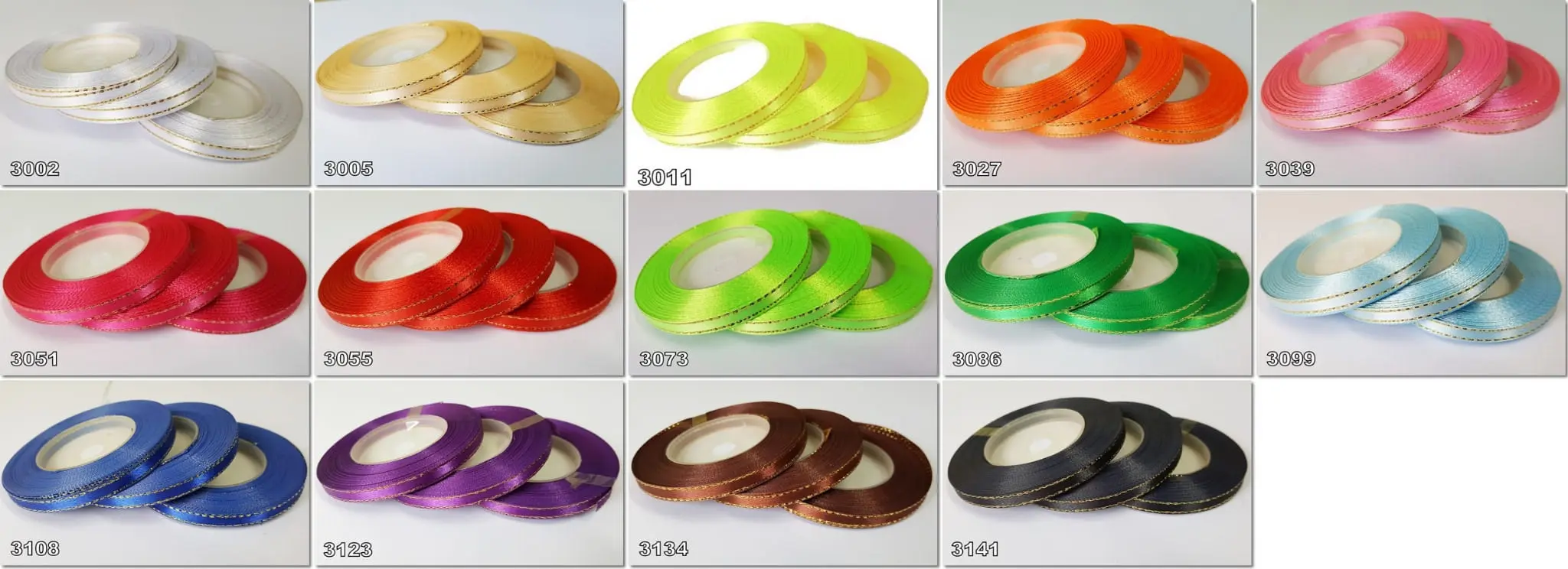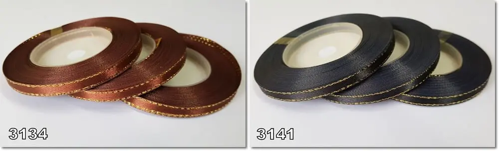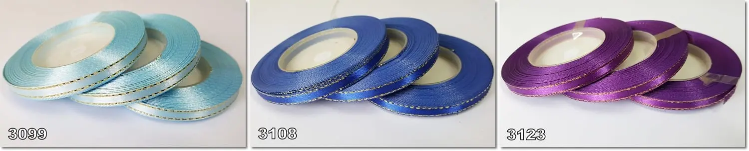 Wstążka SATYNOWA ze ZŁOTYM BRZEGIEM 6mm