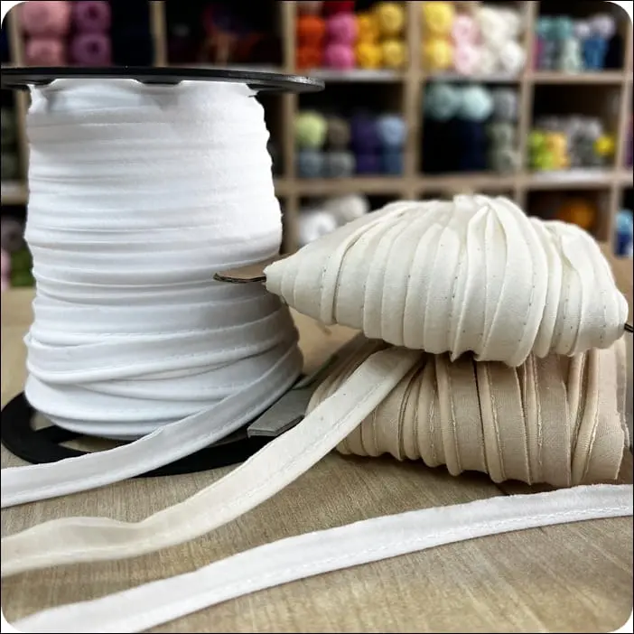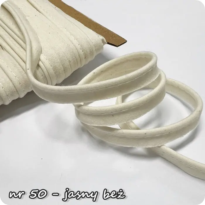 Wypustka wykonana z taśmy ciętej ze skosu. Idealnie nadaje się do wykańczania i dekoltów sukienek, brzegów kieszeni, do szycia poszewek i wielu innych.