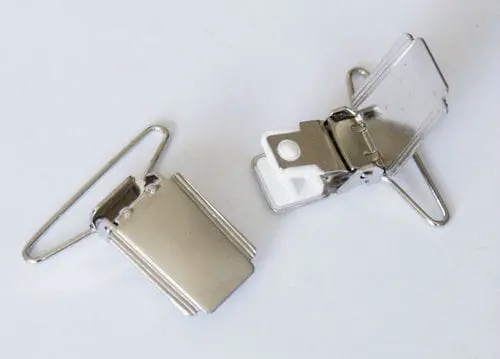 Zapięcie do szelek w kolorze srebrnym, posiada bardzo mocny zacisk.