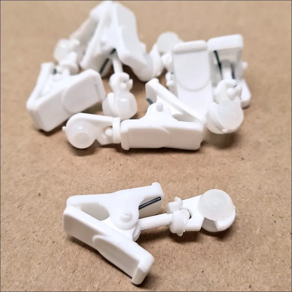 Żabki z rolką do szyny sufitowej do zawieszania firan i zasłon okiennych. Żabka jest obrotowa co pozwala na wygodne przypięcie materiału.