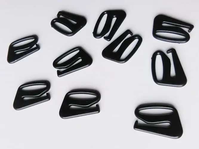 Wykonany z tworzywa, czarny zaczep do ramiączek.