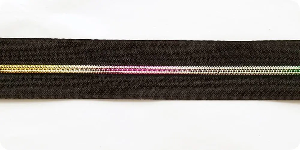 ZAMEK taśma suwakowa 3mm TĘCZOWA CZARNA na metry