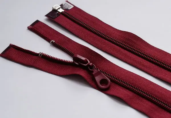 Zamek plastikowy z metalowym suwakiem.