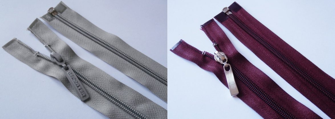 Zamek plastikowy z metalowym suwakiem.