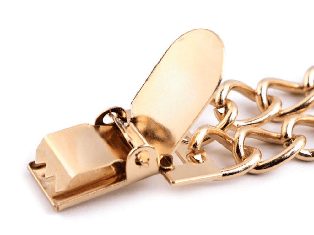 To doskonały wybór dla osób, które chcą w prosty sposób wzbogacić swoją garderobę o stylowy detal. Zapięcie z łańcuszkiem łączy funkcję praktyczną z dekoracyjną, nadając ubraniom wyjątkowy i dopracowany wygląd.