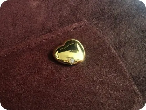- broszka w kształcie serduszka w złotym kolorze z cyrkonią