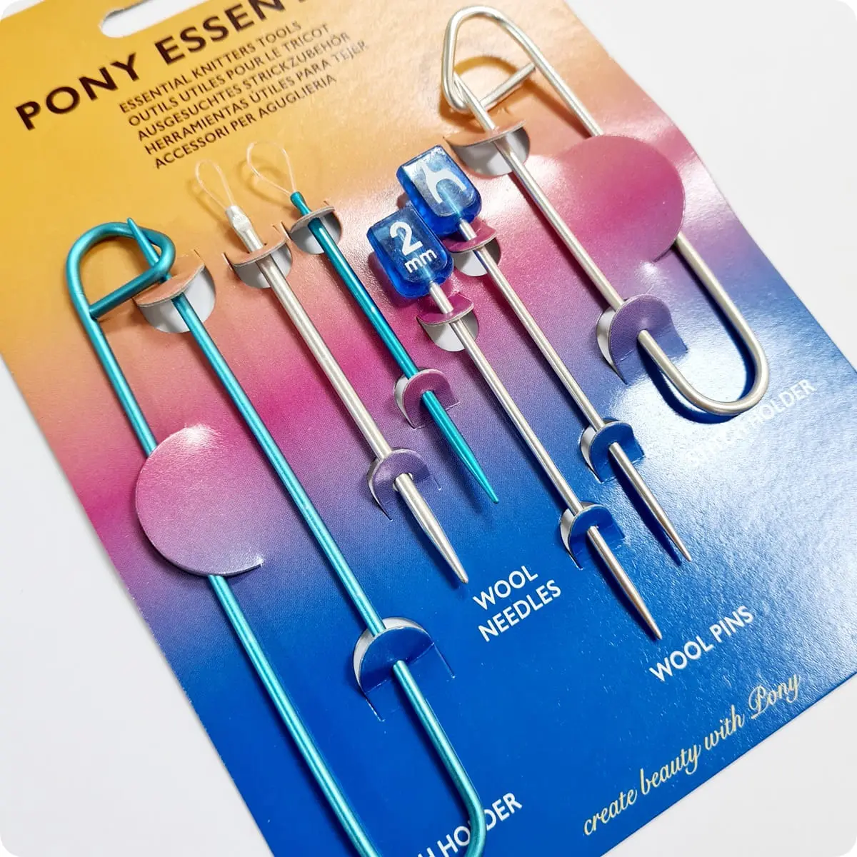 Zestaw renomowanego producenta PONY, który zawiera akcesoria niezbędna dla każdej dziewiarki.