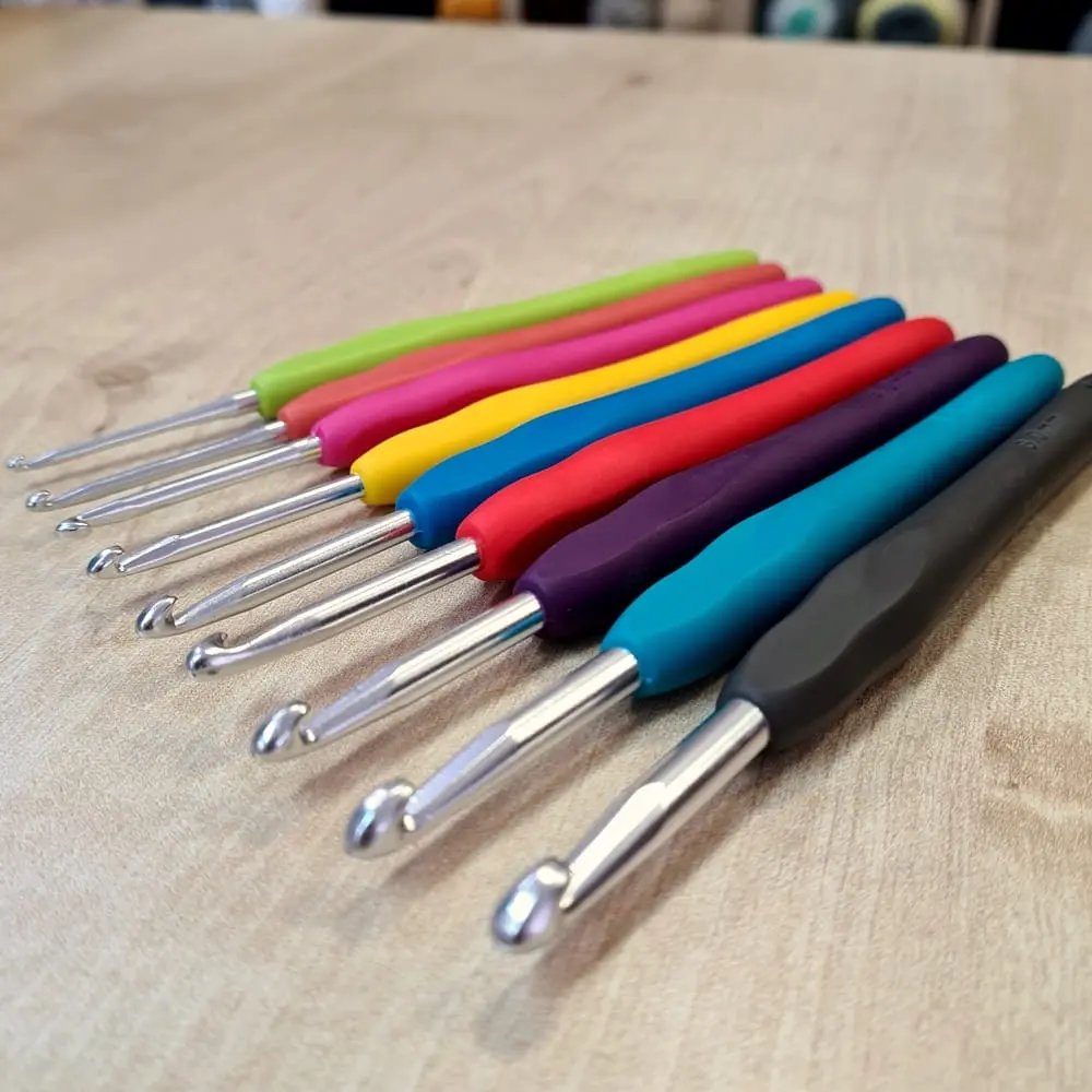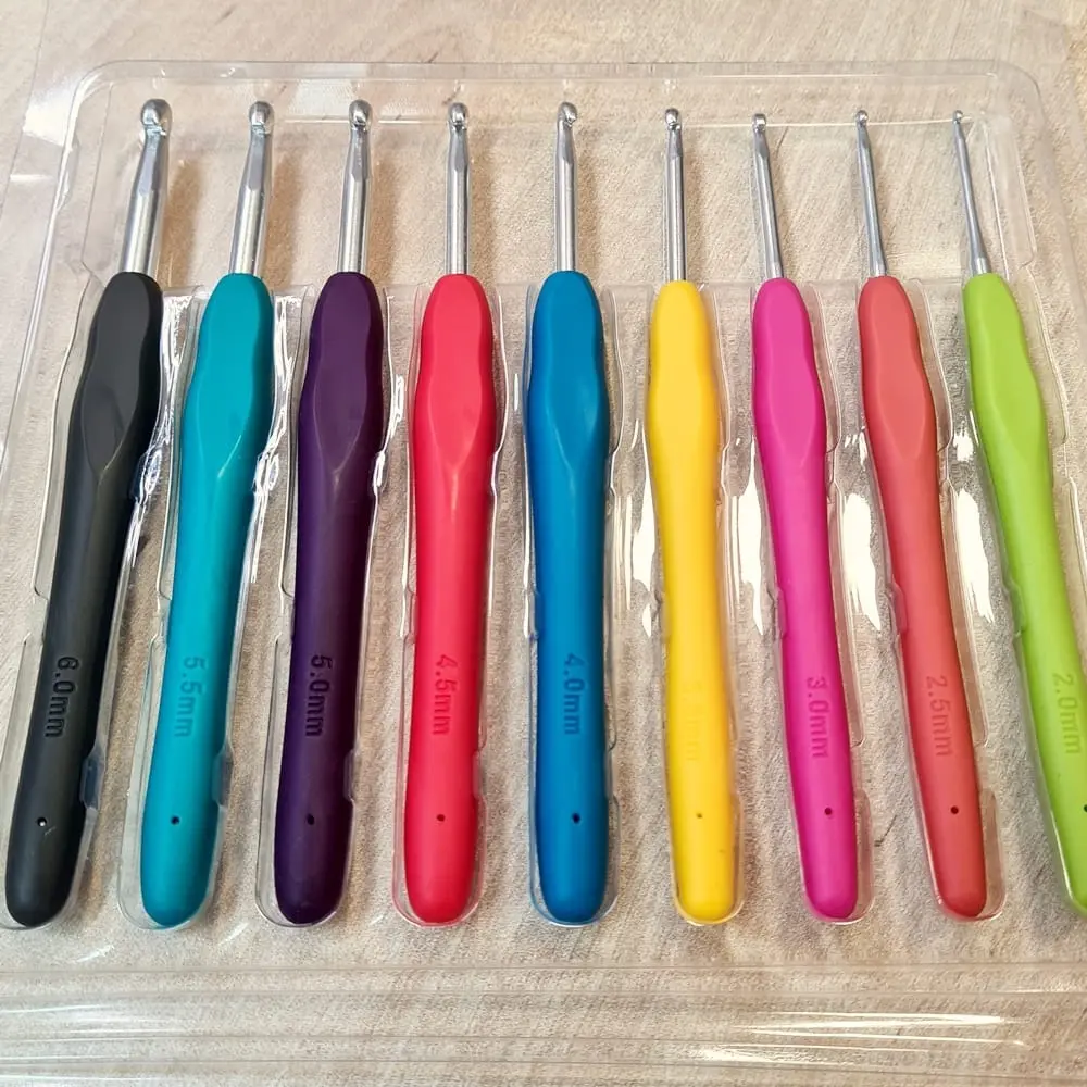 Zestaw kolorowych szydełek Z GUMOWĄ RĄCZKĄ 2-6 mm jest idealny dla miłośników rękodzieła