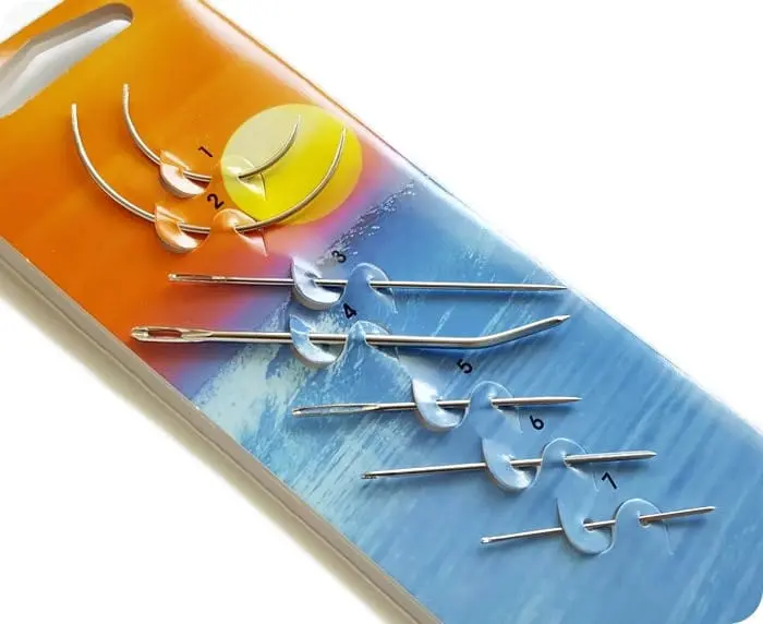 W zestawie znajdują się igły do prac kaletniczych, żeglarskich itd.