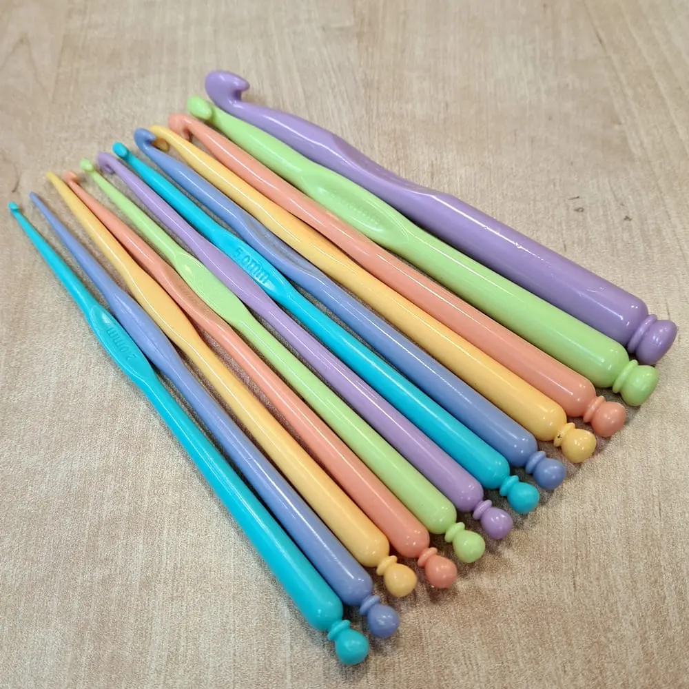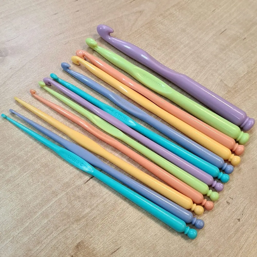 Zestaw szydełek plastikowych w pięknych pastelowych kolorach.