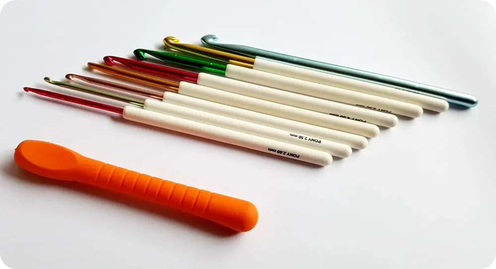 - szydełka w rozmiarach – 2 mm, 2,5 mm, 3 mm, 3,5 mm, 4 mm, 4,5 mm, 5 mm, 6 mm